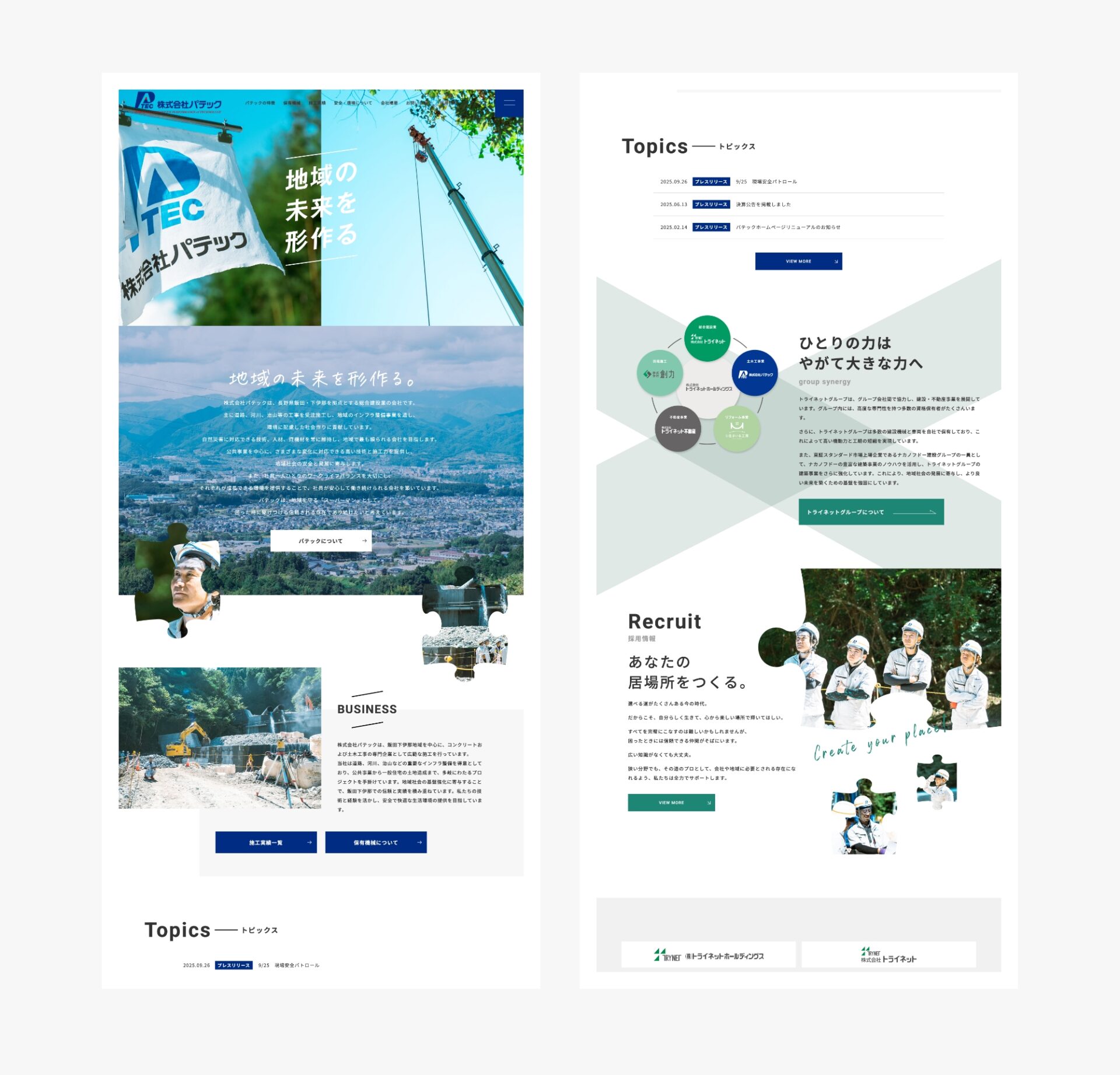 長野県飯田・下伊那を拠点とする総合建設業「株式会社パテック」様。道路・河川・治山といった公共工事を通じて、インフラ整備・災害対応・地域防災に取り組む“地域の守り手”として、日々の業務にあたっています。