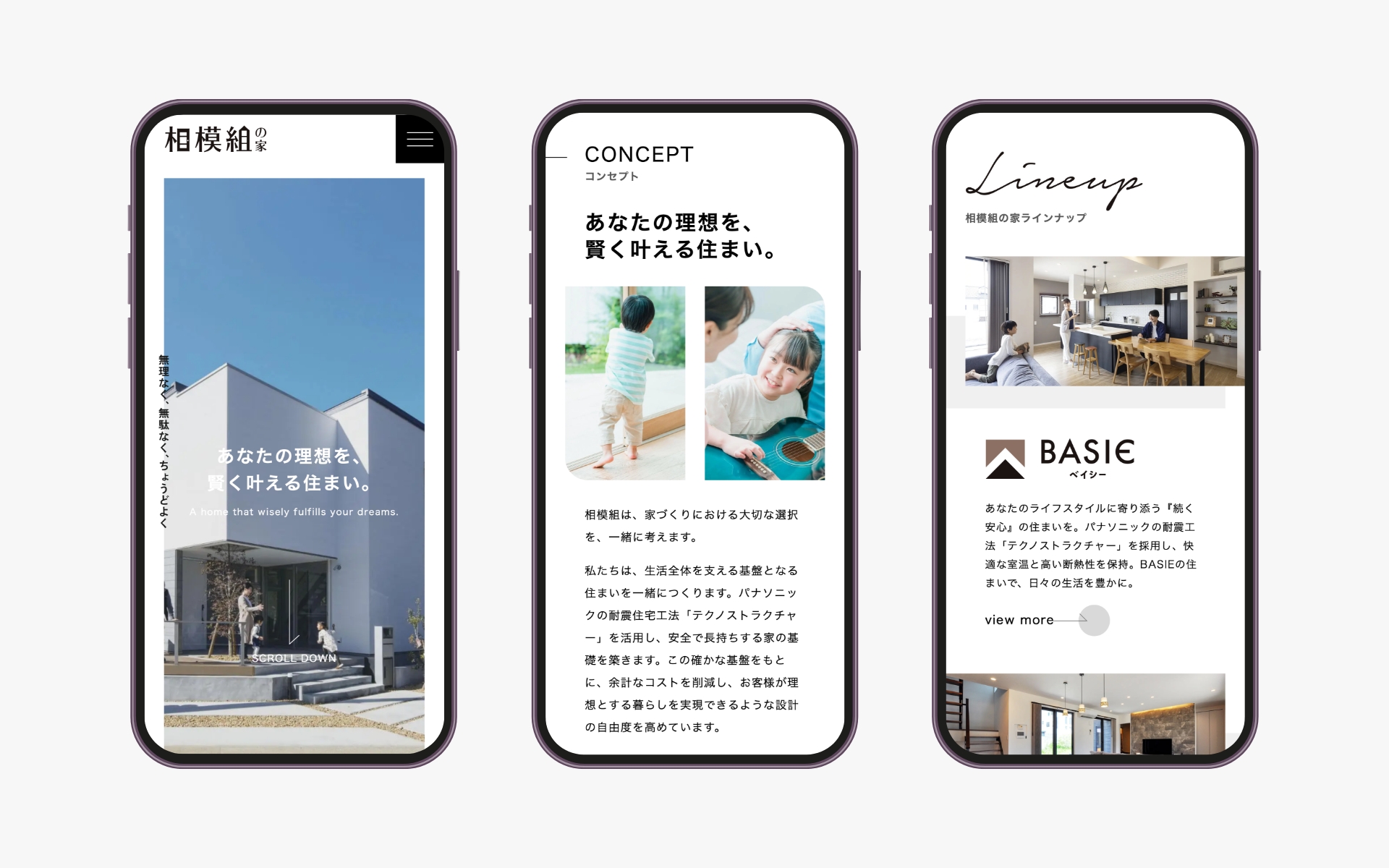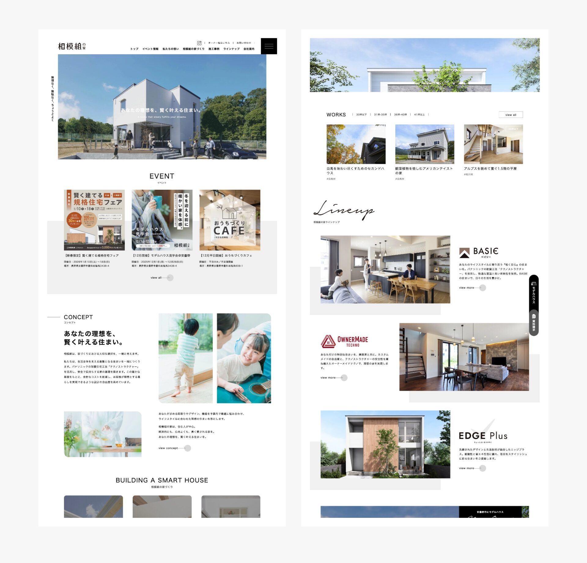 トップページでは相模組の家が大切にしている「賢い選択」という考え方を直感的に伝え、
